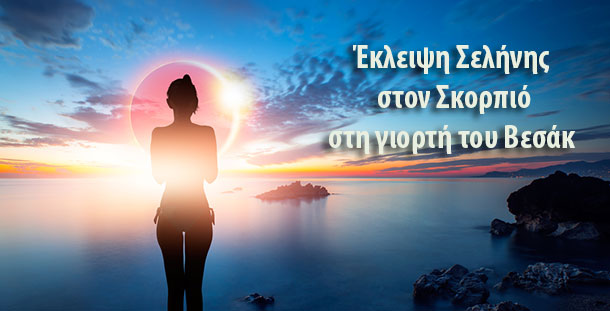 Έκλειψη Σελήνης σε Πανσέληνο στον Σκορπιό το απόγευμα της 5ης Μαΐου, στην 15η του ζωδίου. Πρόκειται για μία έκλειψη που φωτίζει ό,τι πρέπει να εκλείψει, προκειμένου να βρούμε τον δρόμο της μεταμόρφωσης.