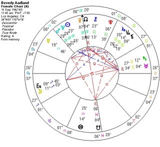 Η Μπέβερλυ ανήκει στο ζώδιο της Παρθένου ως προς τον Ήλιο, αλλά σε σύνοδο με τον Ποσειδώνα και τον Άρη της (στοιχείο της ονειρικής αναζήτησης του συντρόφου – αλλά και οι σύντροφοι μέσα από την τέχνη) στην 29η της Παρθένου (μοίρα ευαίσθητη για ισορροπίες), με τον ωροσκόπο στον Σκορπιό και τη Σελήνη στον Τοξότη. Οι σχέσεις της και μετά τον Φλυν δεν είχαν επιτυχία, ίσως επειδή τα κριτήρια δεν είναι σαφή για την εικόνα του άντρα που θα την ενδιέφερε είτε σαν φλερτ (Άρης – κυβερνήτης και του 5ου της οίκου), είτε σαν σύζυγος (Ήλιος).
