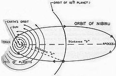Περιγράφει πράγματι μια ευρεία ελλειπτική τροχιά γύρω από τον ήλιο και επιστρέφει κοντά στη γη κάθε 3600 έτη, λες και ο Sitchin είχε ένα προαίσθημα(!). Η τροχιά ακολουθεί την αντίθετη κατεύθυνση αυτής των άλλων πλανητών του συστήματός μας. Κρύβεται αυτήν την περίοδο από τη ζώνη των αστεροειδών που είναι μεταξύ του Αρη και του Δία. Για αυτόν τον λόγο τον παρατήρησαν κάπως αργά. Στη NASA, δεν ξέρουν ακόμη αν πρόκειται ακριβώς για πλανήτη, ή για γιγάντιο κομήτη ή για ένα ουράνιο σώμα που θερμαίνεται για να γίνει αργότερα ένα αστέρι. Εκείνο που είναι αποδεκτό, είναι πως επιστρέφει προς εμάς και είναι τώρα κοντά στον Πλούτωνα.