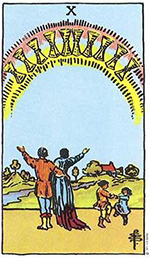 Αισθηματικά: Καλό οιωνός για τα αισθηματικά, δείχνει ικανοποίηση και ασφάλεια στη σχέση τόσο υλική όσο και συναισθηματική, ακόμα και στον τομέα αυτό η κάρτα δείχνει ανταμοιβή στις προσπάθειες και επιθυμίες σας. Σε άλλη περίπτωση κάποιοι ίσως κερδίσατε ή επιλέξατε τη μοναξιά και την απολαμβάνετε με τον καλύτερο δυνατό τρόπο, όπως και νάχει είστε κερδισμένοι.